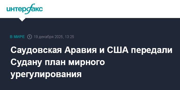 Москва. 19 декабря. INTERFAX.RU - Вашингтон и Эр-Рияд передали план урегулирования в Судане главнокомандующему суданских вооруженных сил Абделю Фаттаху аль-Бурхану, сообщает в пятницу Sudan Tribune.