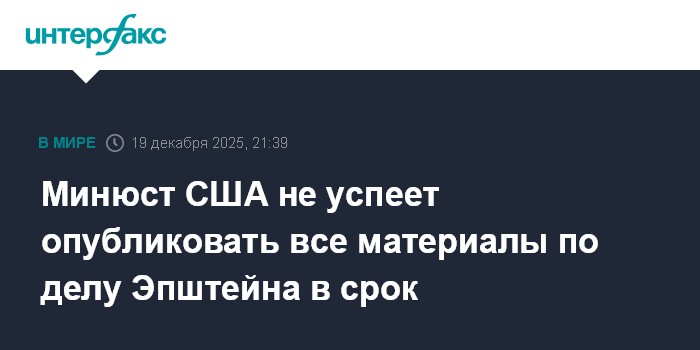 Москва. 19 декабря. INTERFAX.RU - Минюст США опубликует до истечения дедлайна 19 декабря только часть документов по делу обвиняемого в преступлениях на сексуальной почве американского финансиста Джеффри Эпштейна, заявил Fox News заместитель генпрокурора США Тодд Бланш.