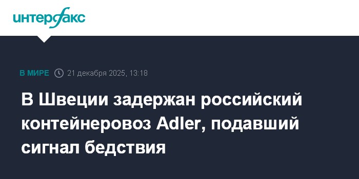 В Швеции задержан российский контейнеровоз Adler, подавший сигнал бедствия