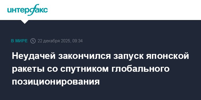Москва. 22 декабря. INTERFAX.RU - Попытка запуска в среду японской ракеты Н3 со спутником глобального позиционирования "Митибики-5" закончилась неудачей, сообщило Японское аэрокосмическое агентство (JAXA).