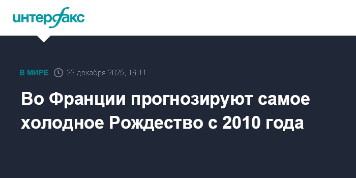 Москва. 22 декабря. INTERFAX.RU - Во Франции метеорологи ожидают на Рождество самую низкую для страны температуру за последние 15 лет, сообщает Figaro со ссылкой на La Chaine Mеtеo.
