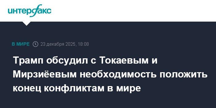 Москва. 23 декабря. INTERFAX.RU - Президент США Дональд Трамп заявил, что провел по отдельности телефонные переговоры с президентом Казахстана Касым-Жомартом Токаевым и президентом Узбекистана Шавкатом Мирзиёевым, одной из тем бесед стало урегулирование конфликтов в мире.
