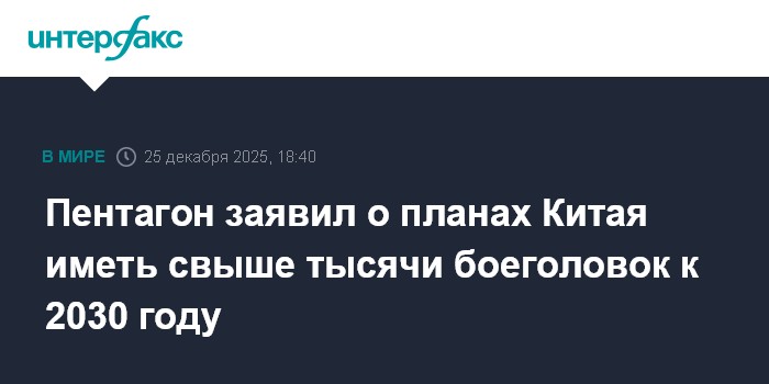 Москва. 25 декабря. INTERFAX.RU - Китайский арсенал ядерных боеголовок в 2024 году находился на уровне "немногим более 600 единиц", что отражает замедление темпов их производства по сравнению с предыдущими годами, говорится в ежегодном докладе Пентагона Конгрессу США.