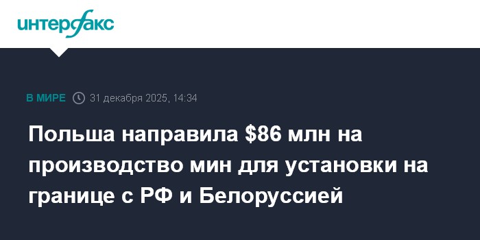 Ранее в Минобороны Польши заявляли о намерении возобновить с 2026 года производство противопехотных мин для их размещения на восточной границе. Сообщалось, что мины, в первую очередь, предназначены для размещения на линии польских укреплений "Восточный щит" на границах с Белоруссией и Россией.