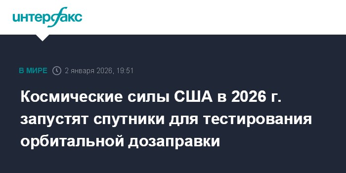 Космические силы США в 2026 г. запустят спутники для тестирования орбитальной дозаправки