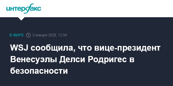 Москва. 3 января. INTERFAX.RU - Вице-президент Венесуэлы Делси Родригес не пострадала в ходе субботней военной операции США, пишет Wall Street Journal со ссылкой на источник.