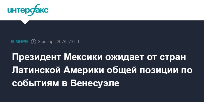 Москва. 3 января. INTERFAX.RU - Страны Латинской Америки выработают единую позицию по захвату военными США президента Венесуэлы Николаса Мадуро, заявила президент Мексики Клаудия Шейнбаум.