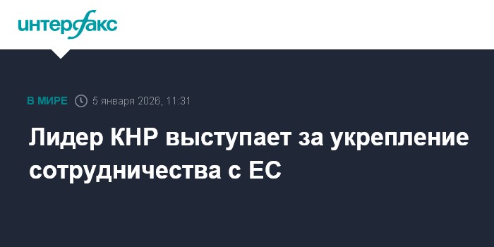 Москва. 5 января. INTERFAX.RU - Китай выступает за укрепление сотрудничества с Евросоюзом, заявил председатель КНР Си Цзиньпин.