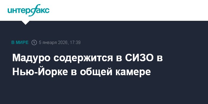 Москва. 5 января. INTERFAX.RU - Бывший президент Венесуэлы Николас Мадуро размещен в общей камере на одном из верхних этажей здания федерального следственного изолятора в (MDC) в Бруклине, сообщил телеканал CBS News, ссылаясь на источники в правоохранительных органах.