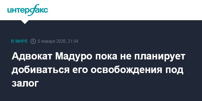 Москва. 5 января. INTERFAX.RU - Один из адвокатов арестованного США президента Венесуэлы Николаса Мадуро, Барри Поллак, заявил, что пока не собирается направлять запрос об освобождении своего клиента под залог.