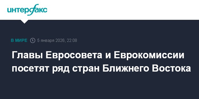 Москва. 5 января. INTERFAX.RU - Председатель Европейского совета Антониу Кошта и председатель Европейской комиссии Урсула фон дер Ляйен посетят 8 и 9 января Иорданию, Сирию и Ливан, сообщила в понедельник пресс-служба Евросовета.