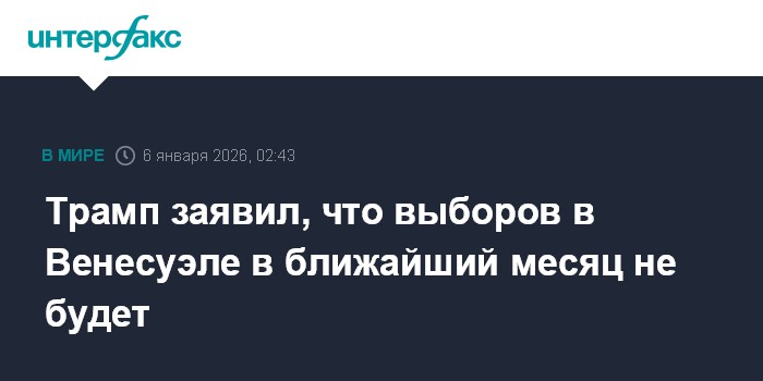 Москва. 6 января. INTERFAX.RU - Президент США Дональд Трамп заявил, что в ближайшие 30 дней выборы в Венесуэле не состоятся.
