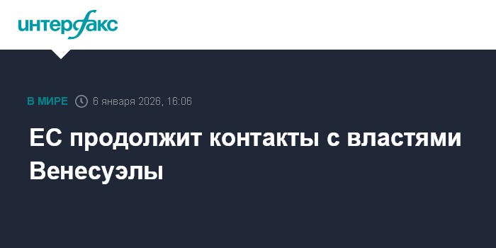 Москва. 6 января. INTERFAX.RU - ЕС продолжит поддерживать прагматические отношения с действующими властями Венесуэлы, заявила представитель Еврокомиссии Анитта Хиппер в связи с приведением к присяге Делси Родригес в качестве временного президента этой страны.