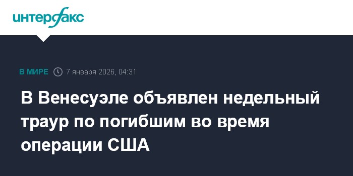 Москва. 7 января. INTERFAX.RU - Временно исполняющая обязанности президента Венесуэлы Делси Родригес объявила семидневный траур по погибшим во время захвата США бывщего главы государства Николаса Мадуро.