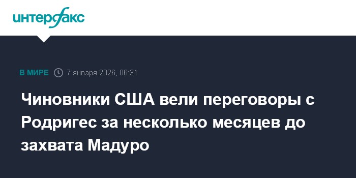 Москва. 7 января. INTERFAX.RU - Американские власти вели переговоры с вице-президентом Венесуэлы Делси Родригес и председателем национальной ассамблеи страны Хорхе Родригесом в течение нескольких месяцев до операции в Каракасе, сообщает телеканал CNN со ссылкой на осведомленные источники.