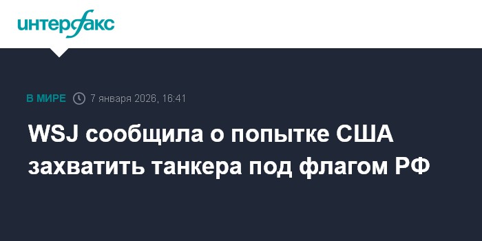 Москва. 7 января. INTERFAX.RU - Береговая охрана США в среду предприняла попытку захвата танкера Marinera, идущего под российским флагом в Северной Атлантике вблизи Великобритании, сообщила газета The Wall Street Journal, ссылаясь на данные американских официальных лиц.