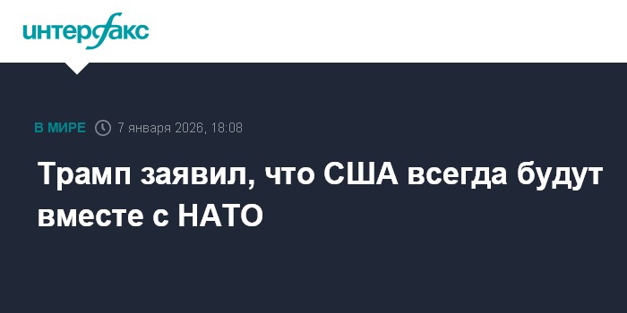 Москва. 7 января. INTERFAX.RU - Американский президент Дональд Трамп в среду пообещал, что США никогда не оставят НАТО наедине с внешними угрозами.