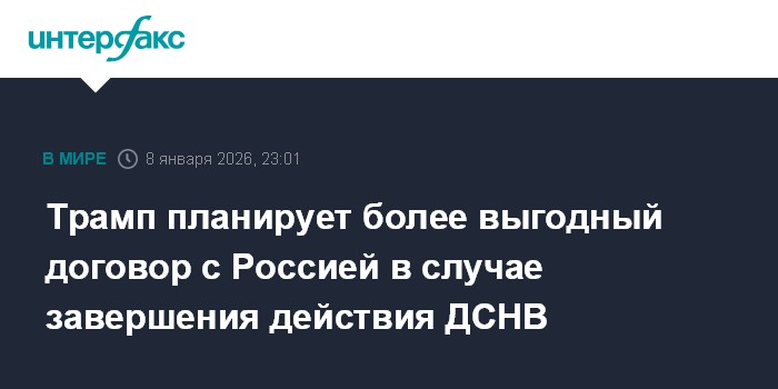 Москва. 8 января. INTERFAX.RU - Если срок действия Договора о сокращении стратегических наступательных вооружений (ДСНВ) истечет, США заключат с Россией более удачный договор, заявил в четверг президент США Дональд Трамп.