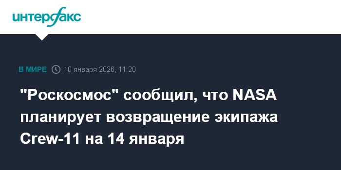 Москва. 10 января. INTERFAX.RU - Возвращение экипажа космического корабля Crew-11 на Землю NASA планирует 14 января, сообщила в субботу госкорпорация "Роскосмос".