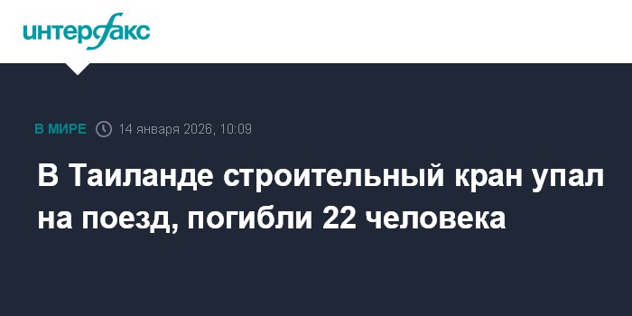 Москва. 14 января. INTERFAX.RU - В Таиланде в провинции Накхонратчасима строительный кран упал на поезд, погибли не менее 22 человек и еще 64 пострадали, сообщает АР со ссылкой на представителя правительства региона.