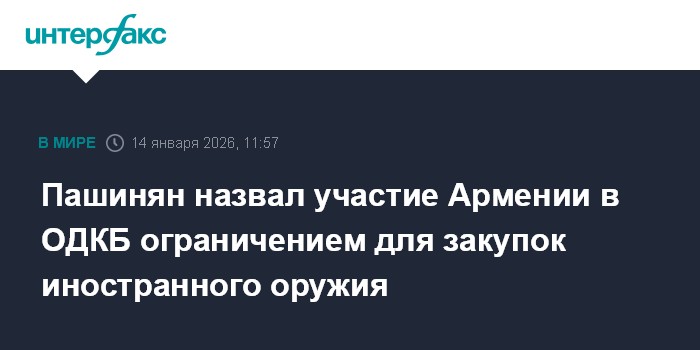 Пашинян назвал участие Армении в ОДКБ ограничением для закупок иностранного оружия