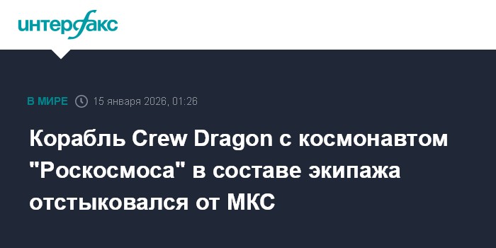 Москва. 15 января. INTERFAX.RU - Пилотируемый корабль Crew Dragon с миссией Crew-11 в четверг по московскому времени расстыковался с Международной космической станцией (МКС) для возвращения на Землю, сообщило NASA.