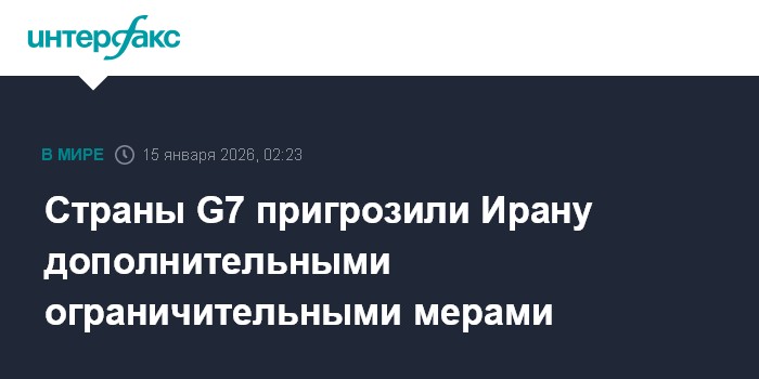 Москва. 15 января. INTERFAX.RU - Главы МИД стран G7 в совместном заявлении осудили "жестокие репрессии" властей Ирана и предупредили о возможности введения дополнительных ограничительных мер.