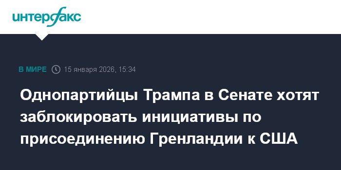 Москва. 15 января. INTERFAX.RU - Ряд американских сенаторов от Республиканской партии предпринимают шаги, нацеленные на то, чтобы помешать их однопартийцу - президенту США Дональду Трампу - силой присоединить Гренландию, пишет в четверг издание The Hill.