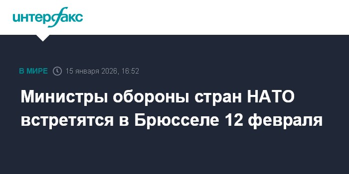 Москва. 15 января. INTERFAX.RU - Совещание министров обороны государств-членов НАТО пройдет в Брюсселе 12 февраля, сообщила в четверг пресс-служба Североатлантического альянса.