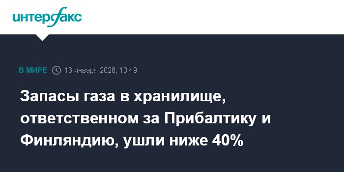 Запасы газа в хранилище, ответственном за Прибалтику и Финляндию, ушли ниже 40%