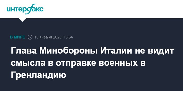 Москва. 16 января. INTERFAX.RU - Министр обороны Италии Гуидо Крозетто заявил, что решение некоторых европейских стран разместить немногочисленные контингенты своих военных в Гренландии никак не поможет решить кризис, связанный с этим островом. Об этом сообщают европейские СМИ.