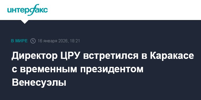 Москва. 16 января. INTERFAX.RU - Директор ЦРУ Джон Рэтлифф 15 января провел в Каракасе встречу с временным президентом Венесуэлы Делси Родригес, пишет The New York Times, отметив, что это произошло после телефонного разговора с Родригес президента Дональда Трампа.