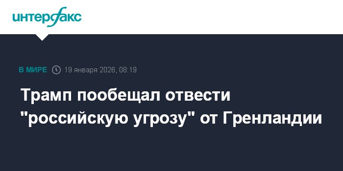 Москва. 19 января. INTERFAX.RU - Президент США Дональд Трамп заявил, что намерен устранить якобы имеющую место угрозу Гренландии, исходящую от России.