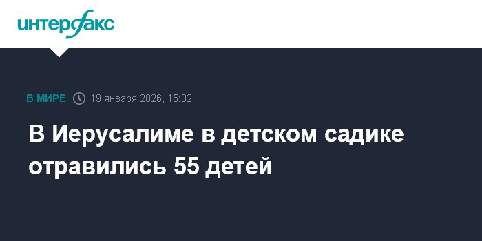 Москва. 19 января. INTERFAX.RU - В Иерусалиме произошло массовое отравление детей в детском садике, пострадали 55 детей, двое четырехмесячных младенцев находятся в критическом состоянии, сообщает The Times of Israel со ссылкой на службу скорой помощи Израиля. Позднее врачи подтвердили смерть двух младенцев.