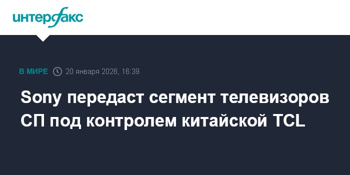 Москва. 20 января. INTERFAX.RU - Японская Sony Corporation и китайская TCL Electronics Holdings Limited подписали меморандум о взаимопонимании по вопросу создания совместного предприятия (СП), которому перейдет сегмент домашних медиасистем Sony.