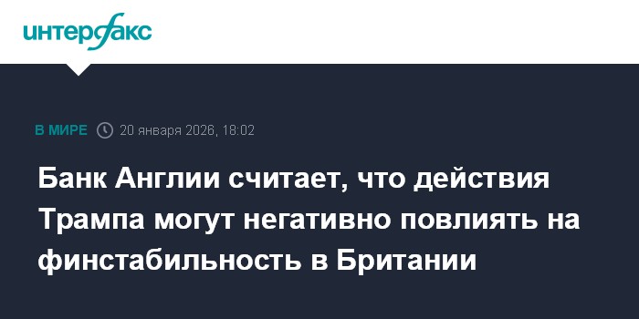 Москва. 20 января. INTERFAX.RU - Атаки президента США Дональда Трампа на независимость Федеральной резервной системы (ФРС) и его угрозы аннексировать Гренландию могут создать существенные риски для финансовых рынков и негативно отразиться на финансовой стабильности в Великобритании, считает глава Банка Англии Эндрю Бейли.