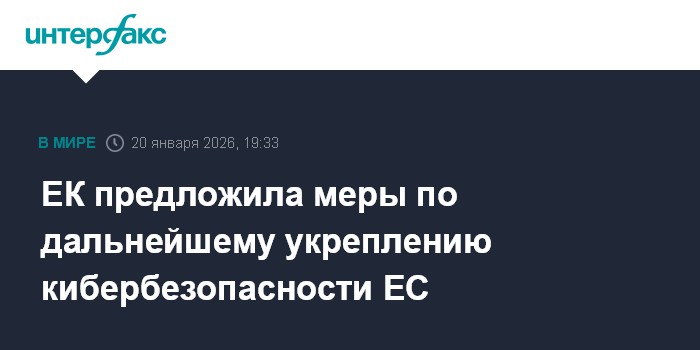 Москва. 20 января. INTERFAX.RU - Еврокомиссия (ЕК) представила в Страсбурге предложения по новому пакету мер кибербезопасности "перед лицом растущих угроз".