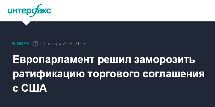 Москва. 20 января. INTERFAX.RU - Европарламент проголосовал за заморозку процесса ратификации соглашения с США по торговле, сообщает BFMTV. Как заявила журналистам председатель парламентской группы социал-демократов Ираче Гарсия Перес, на это согласилось большинство депутатов, представляющих основные политические силы.