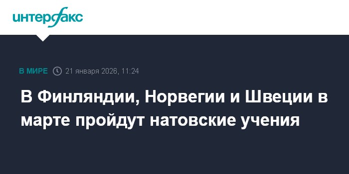 Москва. 21 января. INTERFAX.RU - В северных регионах Финляндии, Норвегии и Швеции пройдут масштабные учения Cold Response по реагированию в арктических условиях на внешние угрозы, сообщил в среду финский телерадиовещатель Yle.