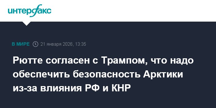 Москва. 21 января. INTERFAX.RU - Генсек НАТО Марк Рютте в среду заявил, что президент США Дональд Трамп правильно говорит о необходимости усилить защиту Арктики из-за политики России и Китая в регионе.