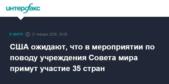 Москва. 21 января. INTERFAX.RU - В Вашингтоне ожидают, что на церемонии, посвященной созданию Совета мира, будут присутствовать представители 35 стран из 50 приглашенных на мероприятие, сообщает в среду CNN со ссылкой на источник.