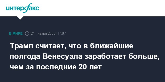 Москва. 21 января. INTERFAX.RU - Президент США Дональд Трамп заявил, что в ближайшие полгода Каракас заработает больше денег, чем за последние 20 лет.
