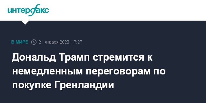 Москва. 21 января. INTERFAX.RU - Президент США Дональд Трамп заявил в Давосе, что хочет немедленных переговоров о покупке Штатами Гренландии.