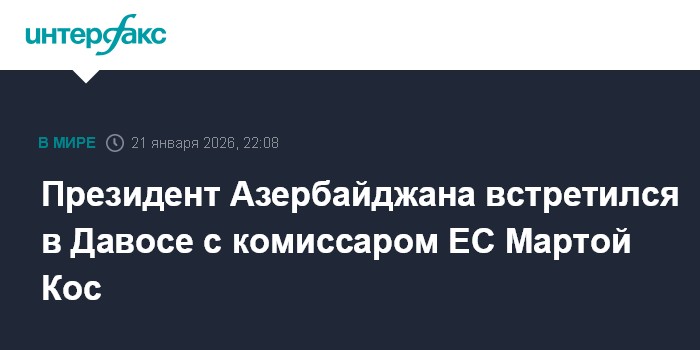 Москва. 21 января. INTERFAX.RU - Президент Азербайджана Ильхам Алиев на "полях" форума в Давосе обсудил с комиссаром Европейского Союза по вопросам расширения Мартой Кос сотрудничество Баку и Брюсселя в сферах энергетики и транспорта.
