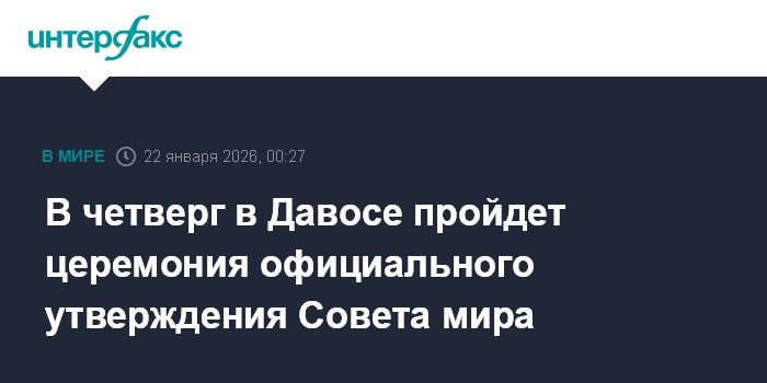 В четверг в Давосе пройдет церемония официального утверждения Совета мира