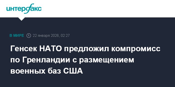 По данным собеседников издания, военные чиновники стран НАТО обсудили компромисс по Гренландии, в соответствии с которым Дания предоставит США суверенитет над небольшими участками гренландской земли, где США могли бы построить военные базы. По их словам, идея такого компромисса принадлежит генсеку НАТО.
