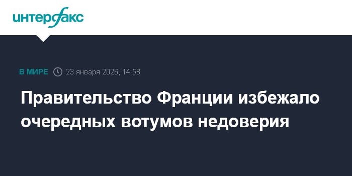 Москва. 23 января. INTERFAX.RU - Национальное собрание Франции (нижняя палата парламента) отвергло в пятницу два вотума недоверия правительству страны, инициированных крайне левой партией "Непокорённая Франция" и правым "Национальным объединением".