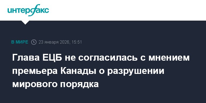 Она отметила, что не совсем согласна с премьер-министром Канады Марком Карни, который ранее на этой неделе в ходе выступления на ВЭФ выразил мнение, что мировой порядок находится "в разгаре разрушения", и призвал менее крупные страны "держаться вместе", чтобы противостоять давлению со стороны сверхдержав.