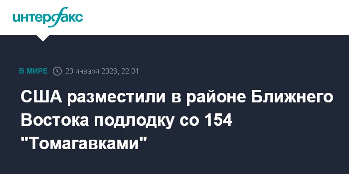 Москва. 23 января. INTERFAX.RU - Пентагон разместил недалеко от Ближнего Востока атомную подводную лодку USS Georgia, способную нести 154 крылатые ракеты Tomahawk с дальностью 1,6 тыс. км, сообщило издание Army Recognition.
