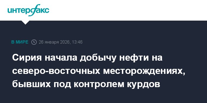 Москва. 26 января. INTERFAX.RU - Сирия возобновила добычу нефти на месторождениях на северо-востоке страны после перехода контроля над ними от курдских вооруженных формирований "Сирийские демократические силы" к центральному правительству.